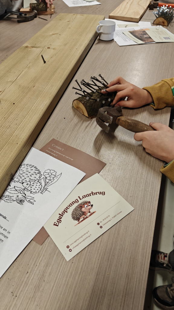 Er werd naar hartelust getimmerd! Toen de egels klaar waren, keerde de rust weer enigszins terug en was er ter afsluiting nog een leuk spel, de stekelrace van Oerrr. Toen het spel uitgespeeld was, was het tijd om naar huis te gaan.