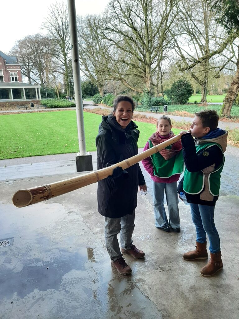 En daarna? Toen mochten ze het zelf proberen, midwinterhoorn blazen.