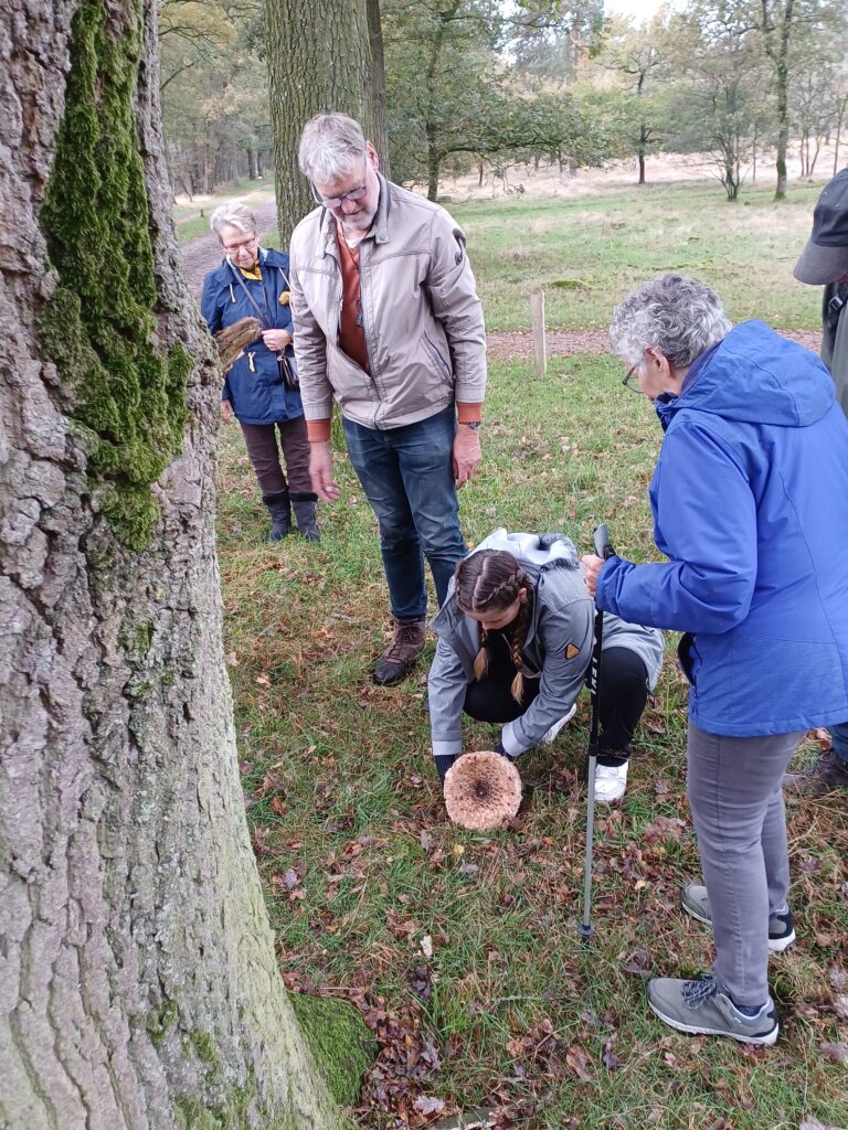 Een 20-tal deelnemers waren naar de dagcamping op de Borkeld gekomen om mee te gaan op zoek naar paddenstoelen