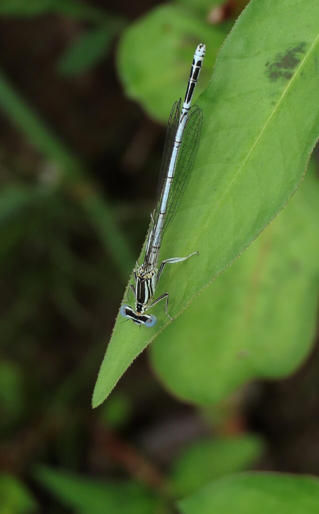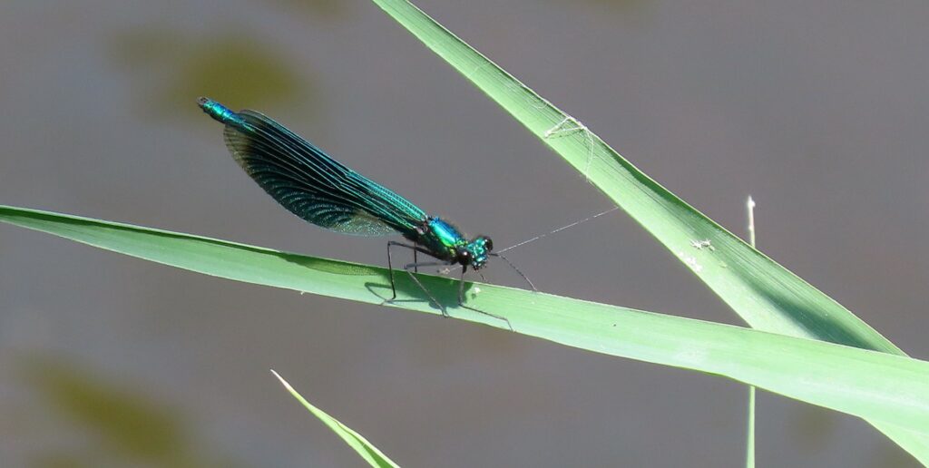 Zoals op onderstaande foto, de Weidebeekjuffer, een veelvoorkomende soort bij stromend water.