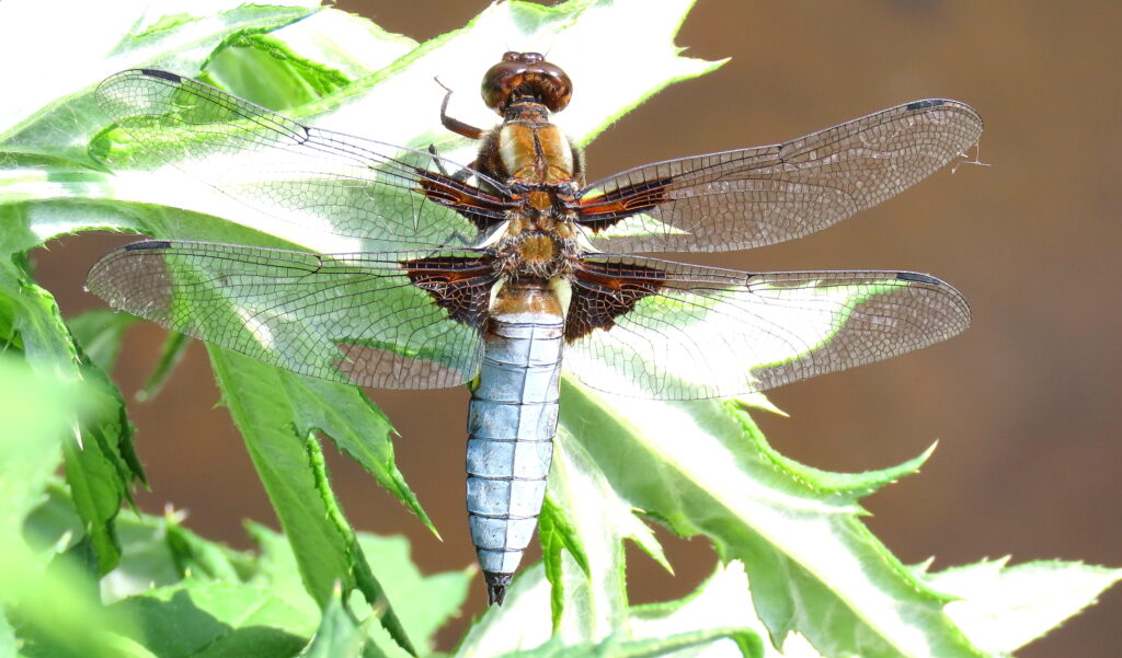 Of deze, de Platbuik, in dit geval een Mannetje. Deze is hoofdzakelijk blauw, terwijl het vrouwtje bruingeel is.