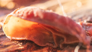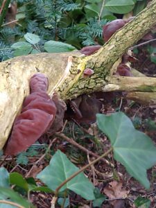 Als je helemaal genoeg hebt van het regenweer, is er de troost van het zachte fluweel van het echte judasoor. Een paddenstoel die in de zomer zwart en uitgedroogd aan een dode vliertak hangt, maar met regenweer weer opzwelt om zachtrood te shinen!