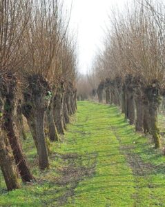 In deze griend (=akker met wilgen) kun je een korte wandeling maken door de wilgentuin met een vangpijp van een eendenkooi en een schrankkeet.
