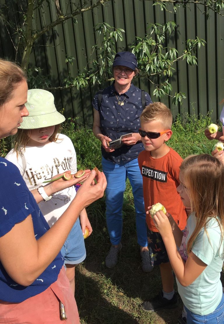 Irene Franken vertelde over de bloemen van de appelboom die bestoven moesten worden en dat je dat ‘bloemetje’ nog bij elke appel terugziet, dit is namelijk het kroontje. Leuk hè.