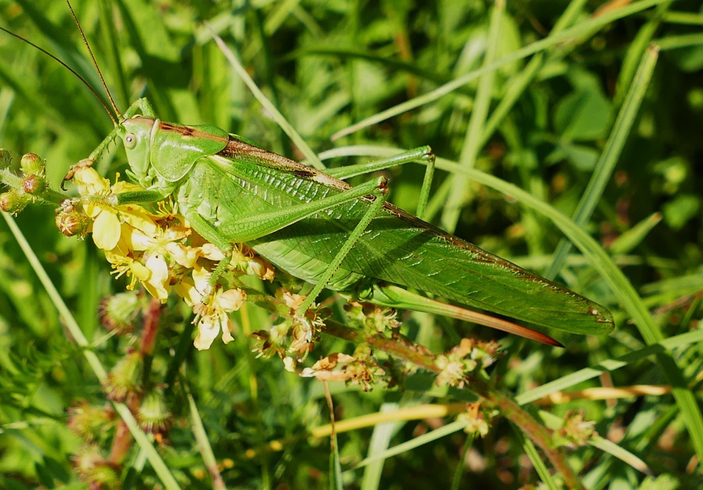 Het grootste insect, de groene sabelsprinkhaan, liet zich aan alle kanten fotograferen.