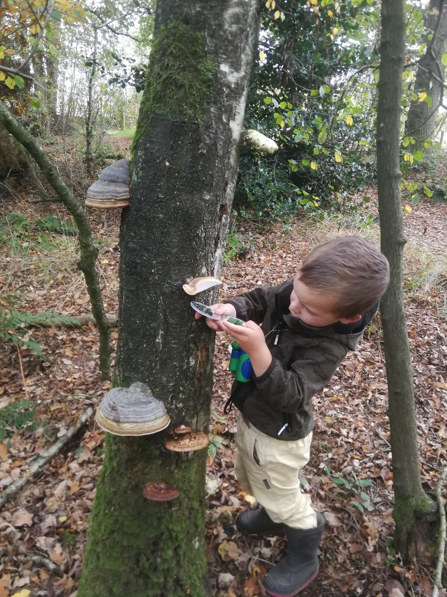 Die dieren in een potje vonden de kinderen erg leuk. Doordat het de laatste tijd te mooi weer was geweest waren er niet zoveel paddenstoelen.