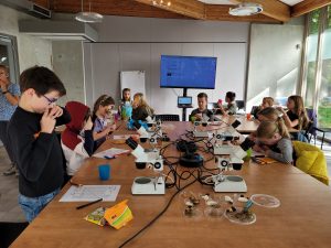 Dat was interessant, de jongens en meisjes waren verbaasd over wat ze allemaal te zien kregen, heel anders wat je in het bos ziet. Als ze alles onder de microscoop goed bekeken hadden, konden ze met een werkblad of kleurplaat aan de slag.
