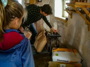 De molenaar en de leerling molenaar hebben ons een heleboel over de molen verteld. De opleiding voor molenaar duurt 2 jaar, je moet alle seizoenen meegemaakt hebben. Eigenlijk moet je als molenaar ook weerman zijn.