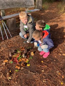 We hebben het toen gecombineerd met het thema herfst. De kinderen gingen in 2 groepjes op pad met een zoekkaart van