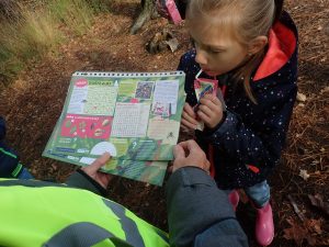 Tijdens de wandeling werden de jongens en meisjes getrakteerd op een pakje drinken en een paddenstoelensnoepje. De lege pakjes werden natuurlijk meteen in de vuilniszak gedaan samen bij nog wat troep, die niet in het bos thuishoort.