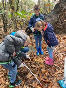 Tijdens de wandeling werden de jongens en meisjes getrakteerd op een pakje drinken en een paddenstoelensnoepje. De lege pakjes werden natuurlijk meteen in de vuilniszak gedaan samen bij nog wat troep, die niet in het bos thuishoort.