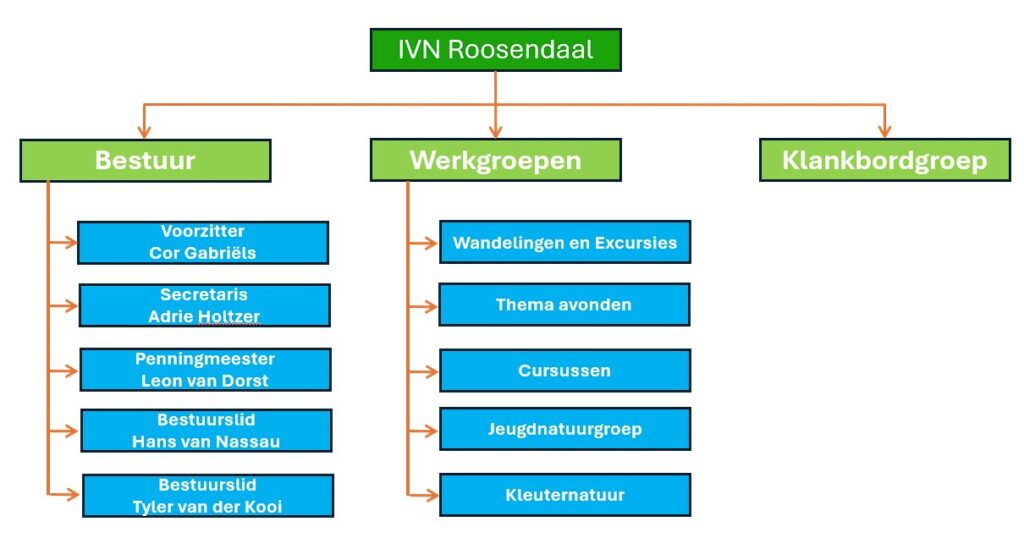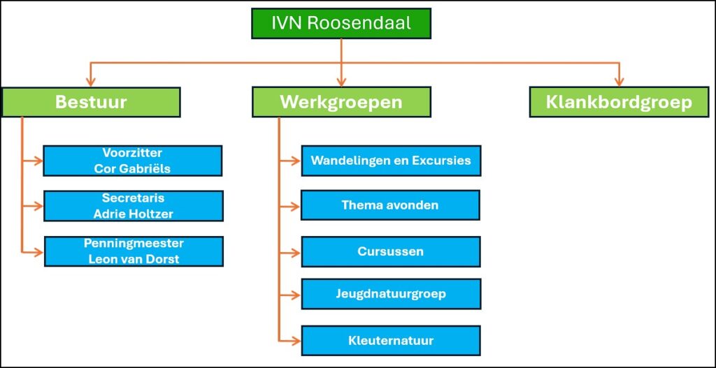 IVN Roosendaal heeft als Lokale IVN afdeling in de regio West-Brabant de volgende organisatie structuur.