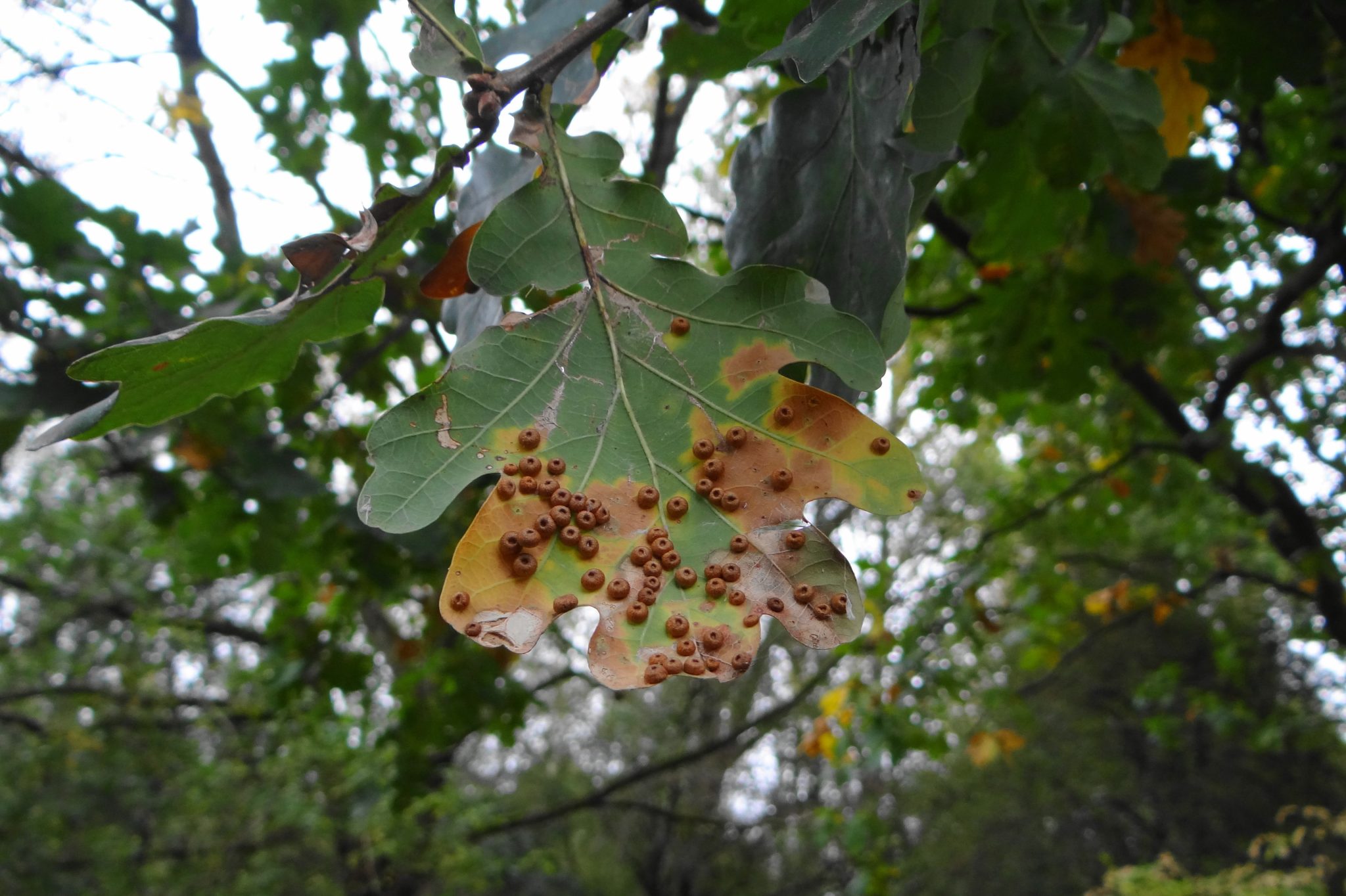 Er staat een vrij grote es met veel dode takken. Deze boom is aangetast door de essenziekte, veroorzaakt door het valse essenvlieskelkje. De ziekte is vanuit Polen verspreid. Een blauwe reiger staat doodgemoedereerd aan de kant van een sloot naar wat lekkers te loeren. We zien op een eikenblad wespengalletjes. Die zien we ook op de moseik, geïmporteerd uit Zuid-Europa. Het is een siereik. Het napje van de eikel lijkt bekleed met mos. Op een vlier zitten judasoren. Er ligt veel dood hout. Het is de voedingsbodem voor veel insecten (trekt vogels aan) en er groeien zwammen op, de grote opruimers in de natuur. Tevens is het een goede voeding voor de grond. Natuurlijke mest en helemaal gratis.