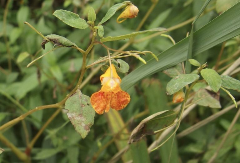 Alle vrouwen waren aangenaam verrast door het wilde karakter van dit voormalige (niet onderhouden) griend. De sporen van de bever (in de vorm van een ‘glijbaantje’ met krabsporen en verderop omgeknaagde bomen en boomstammetjes in het water) ontlokten enthousiaste reacties. De wilg werd uitvoerig bekeken – die is immers gastheer voor een groot aantal soorten (dieren zowel als planten). Diverse plantensoorten wekten verwondering: Brede wespenorchis, Oranje springzaad, om enkele soorten te noemen.