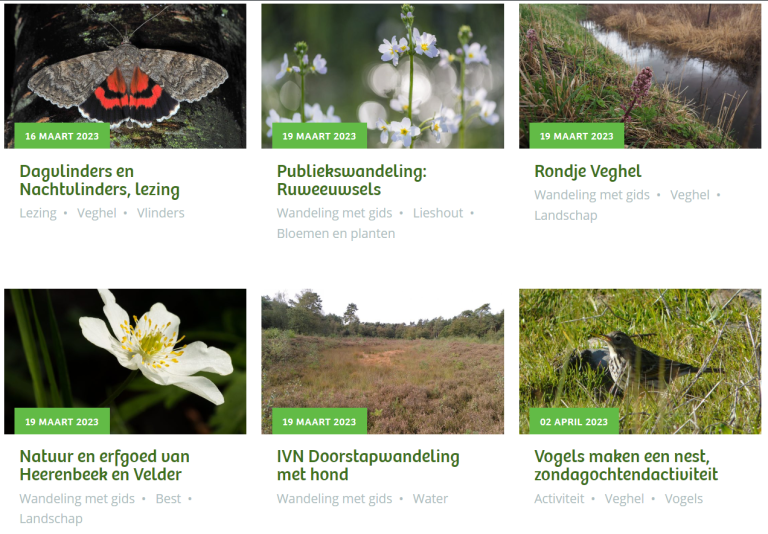 In deze regio worden door de omliggende IVN-afdelingen enorm veel boeiende activiteiten georganiseerd. Op de website kun je makkelijk selecteren op activiteiten in de buurt. Bijvoorbeeld wat is binnenkort te doen in een straal van 10km rondom Rooi >>