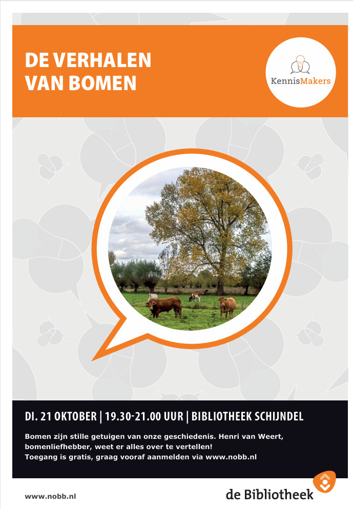 Zijn presentatie sluit mooi aan bij de expositie Bomen Takken Bladeren die tot 2 november te zien is in het Museum Jan Heestershuis en bij de Maand van de Geschiedenis met Natuurlijk! als thema. Nieuwsgierig naar het leven van bomen? Kom dan naar de Bibliotheek Schijndel voor een avond vol verhalen, geschiedenis en natuur.