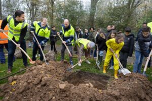 Een perfecte ochtend, waarbij behoorlijk gegraven en geplant werd. Zelfs de vier wethouders werkten volop mee! Het werd een groot succes, mede door de betrokkenheid van alle leerlingen, docenten en de inzet van alle betrokken bij dit festijn.
