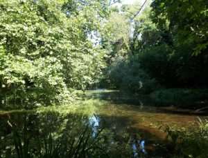 Ook werd uitgebreid stil gestaan bij de geschiedenis van Obbicht en de jarenlange binding met België én natuurlijk de geschiedenis van het prachtige kasteel “Obbicht. ” Ondanks de warmte werd het een geslaagde wandeling en gingen de wandelaars naar huis met een leuke attentie – IVN Stein 50 jaar-, waaronder een mooi boek over “Van Kingbeek tot Knup”.