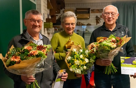 Na de heldere financiële verantwoording door penningmeester Sonja Verstegen volgt het meer feestelijke onderdeel van deze jaarlijkse vergadering: de huldiging van de jubilarissen Theo van de Velden en Chris van Lieshout. Zij worden vanwege respectievelijk 25 en zelfs 50 jaar lidmaatschap in de bloemen gezet. Monique de Wit (25 jaar lid) is verhinderd.