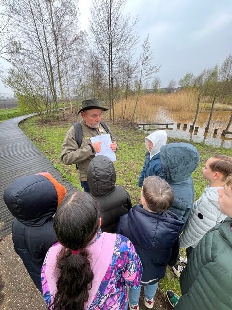 Donderdag 2 april. Het is bijna negen uur en vanwege de regen wachten wij, Saskia, René en Twan, nog even in de auto op de kinderen van groep 5 t/m 8 van openbare basisschool De Cirkel. Het wordt de tweede keer dit schooljaar dat we de kinderen gaan rondleiden in het Zuiderpark. Uiteraard met een nieuwe route en nieuwe onderwerpen. We hebben vooraf contact gehad met een leerkracht en hebben een rondleiding voorbereid die aansluit op de onderwerpen die in de afgelopen weken op school behandeld zijn tijdens de lessen ‘Alles is leven’.