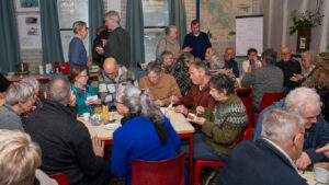 Na afloop vond de traditionele nieuwjaarsreceptie plaats in De Groenhoeve. De voorzitters van de drie verenigingen blikten terug op 2024. Bovendien presenteerden zij de nieuwe folder met het gezamenlijke jaarprogramma voor 2025, vol met boeiende excursies en informatieve lezingen. Een speciaal woord van dank ging uit naar Gonnie en René, die met koffie, taart, hapjes en drankjes zorgden voor de inwendige mens.