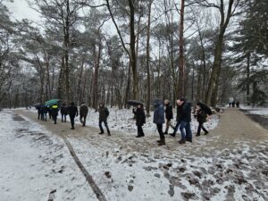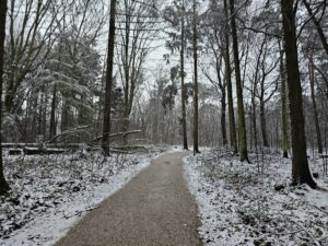 Op de eerste zondag van januari verzamelden leden van IVN Uden e.o., Vogelwacht Uden en Vrijwillig Landschapsbeheer Uden zich bij de parkeerplaats van camping De Heische Tip in Zeeland voor de jaarlijkse Nieuwjaars wandeling. Ondanks het gure weer was de opkomst groot. Een vers sneeuwtapijt gaf de ochtend en het bos een sprookjesachtig tintje. Hoewel een lichte, aanhoudende regenbui dit witte decor langzaam deed verdwijnen.