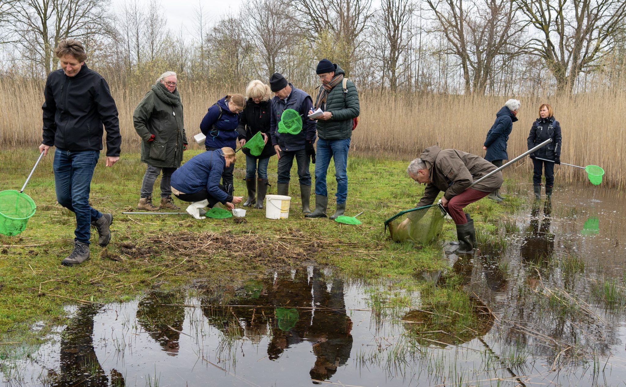 Udense Natuurgidsen in Opleiding verkennen de poelen van hun onderzoeksgebied