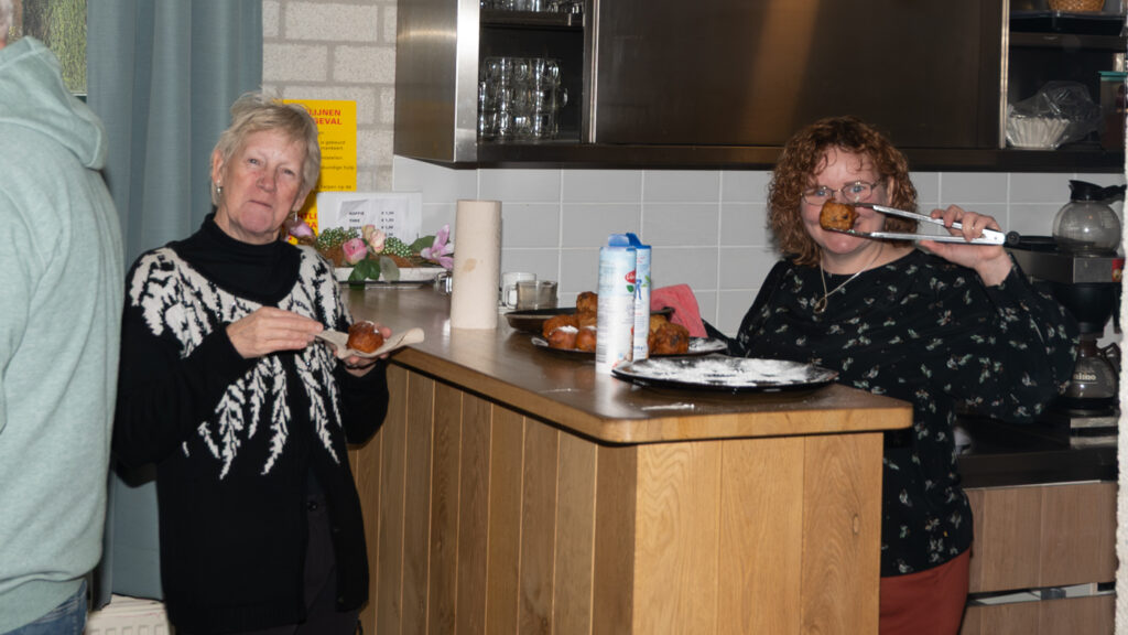 Daarna was er de gezamenlijke toost met goede wensen voor elkaar, tijd voor de super lekkere oliebollen van Mignon van de Wittenboer en nog een poosje buurten met elkaar.