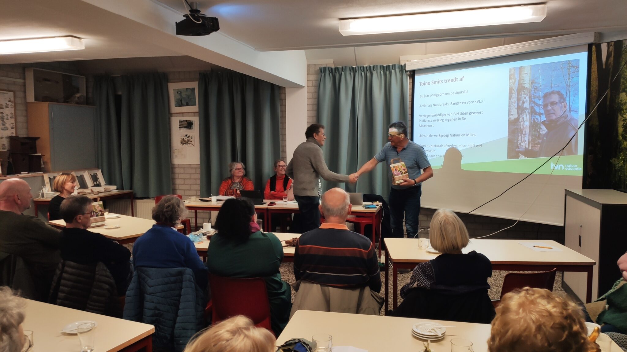 Ook Corrie, Ingrid en Rini werden nogmaals bedankt voor hun begeleiding bij de Natuurgidsen opleiding. En natuurlijk hebben we onze jubilarissen gehuldigd. Dit jaar niet met een bos bloemen, maar met een zak biologisch geteelde bloembollen, die van de zomer de tuinen of terrassen kunnen opsieren.