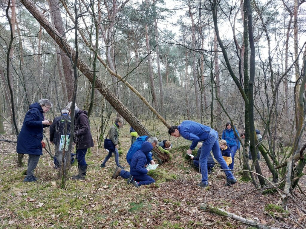 De klok was net verzet, maar dat weerhield velen er niet van om mee te doen. Met een opkomst van 49 deelnemers trokken we in vier groepen de natuur in, vol nieuwsgierigheid naar mossen en korstmossen. Gewapend met loepjes bekeken we deze fascinerende organismen: planten zonder vaatstelsel ofwel de mossen en schimmels die samenwerken met algen ofwel de korstmossen.
