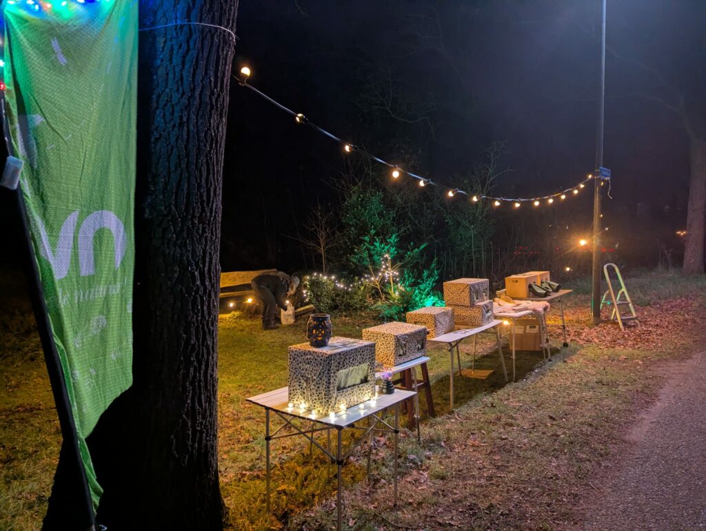 Met voeldozen en geluidsboxje en andere interessante materialen uit de natuur konden de deelnemers, jong en oud, aan de slag. In het donker zie je toch minder in de natuur. Daarom werden ze vooral geprikkeld om ook eens wat andere zintuigen te gebruiken. Het was er druk en gezellig en de deelnemers vonden het leuk!