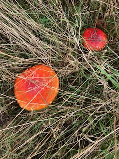 We beginnen met het nabootsen van het onstuimige weer en de regenbuien van de afgelopen dagen. Maar daar hebben we vandaag gelukkig geen last van. Samen gaan we op zoek naar wat de natuur ons biedt in de herfst. De kinderen verzamelen zelf gevonden herfstspulletjes in hun schatkisten (eierrekjes of emmertjes). De groep wordt opgesplitst in twee kleinere groepjes met oudere en jongere kinderen bij elkaar. Er wordt gekeken naar de mooie beginnende herfstkleuren en wat de functie van die verkleuringen is, naar de verschillende mossen en natuurlijk ook naar de vele paddenstoelen. We zien er erg veel in allerlei kleuren en vormen. De kinderen ontdekken o.a. duivelseieren met hun uitkomende stinkzwammen, knal oranje koraalzwammetjes, heksenboleet, heel veel aardappelbovisten, sponszwam en natuurlijk voor kinderen de enige echte rood met witte stippen vliegenzwam. We vertellen ze dat paddenstoelen niet alleen mooi zijn, maar ook waarom ze zo belangrijk zijn in de natuur. Natuurlijk doen we ook nog een spelletje tussendoor.
