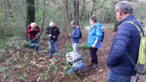 Op zondagochtend 29 oktober 2023 verzamelt zich om 9.00 uur een mooi groepje van zestien deelnemers op de parkeerplaats aan de Schansweg. Na alle regen van de afgelopen dagen was het een beetje afwachten of er zich wandelaars zouden melden. Bij het voorfietsen van afgelopen vrijdag hebben we, Joep, Chris en ik, besloten om de route aan te passen (met dank aan Joep), omdat hele stukken van de originele route praktisch onbegaanbaar waren door veel modder.