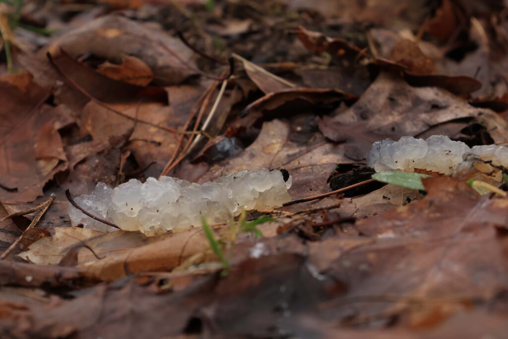 Voor tekenen van leven in de natuur was het vooral de bloeiende hazelaar die duidelijk aandacht trok. Daarnaast zagen we nog wat soorten paddenstoelen of restanten daarvan (o.a. gele trilzwam en judasoor). Langs de oever van de Venloop wees een oplettende deelnemer op sterrenschot, braaksel van een reiger met kikker of pad op zijn menu. Die laatste zijn dus duidelijk ook al actief, want het zijn de eitjes van die amfibieën die in de maag van de reiger gaan zwellen en tot ruimtegebrek leiden.