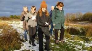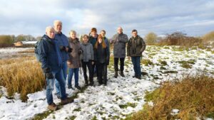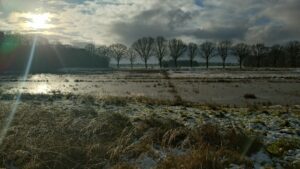 Bij de voorbereiding op zaterdag 11 januari was het koud (-3 oC) en het zicht was niet meer dan 150 meter. We gingen op de fiets; ik was mijn richtingsgevoel helemaal kwijt. Esther wist ons echter moeiteloos de weg te wijzen. We kregen enkele nieuwe aanknopingspunten om ons beter voor te bereiden. De weersvoorspelling voor zondag was bijna hetzelfde. Dus we verwachtten niet veel opkomst. Op zondagochtend om 9.00 uur was het daarentegen zonnig en +1 oC . Er waren 33 belangstellenden, vooral uit de regio.