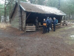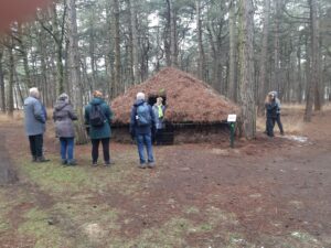 We hebben heerlijk koffie gedronken bij de gastvrije Mini Camping De Noordkant. Op de terugweg liepen we stevig door via de Kievitslaan door de Peelse bossen. Vlakbij het dorp stonden we nog even stil bij Bunker 222. Deze oude communicatiebunker uit de Koude Oorlog, gebouwd rond 1951, is in 2021 omgebouwd tot vleermuiswinterverblijf. De vleermuizen hebben het steeds moeilijker door een afname van insecten en leefruimte, en dit verblijf zal hen helpen om te overwinteren.