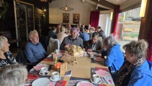 Na de wandeling genoten we van een lunch bij Herberg De Brabantse Kluis in Aarle-Rixtel. Deze sfeervolle herberg, gelegen naast een klooster en midden in het Brabantse landschap, bleek de perfecte plek om even bij te komen. We zaten gezellig aan grote tafels met volop ruimte voor iedereen, genietend van koffie en thee en lekkere broodjes. Na afloop waren we het er allemaal over eens: De Bundertjes is een indrukwekkend gebied, met mooie natuur en verrassingen. Een geslaagd uitje, met dank aan onze eigen Adriëtte die dit geregeld heeft, en onze gidsen van IVN Helmond voor hun inspirerende rondleiding!