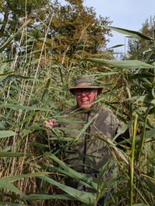 De gidsen hadden de opdracht gekregen om een verrassende wandeling te verzorgen, en dat is ze absoluut gelukt! Het was niet alleen verrassend, maar ook uitdagend! Van verharde paden naar knusse bospaadjes tot wandelend tussen het manshoge riet en brandnetels. We zagen prachtige bomen, waaronder grote tig jaar oude (ratel)populieren, indrukwekkende zwarte abelen en helaas ook essen die getroffen zijn door de essentaksterfte.