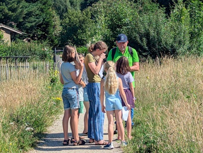 In het park staan bloeiende grassen als gewoon timoteegras, witbol en kropaar en veel verschillende wilde planten als knoopkruid, duizendblad, kleine pimpernel en slangenkruid. We bespreken het verschil tussen wind- en insectenbestuiving en bewonderen de sierlijke, veervormige stempels (het bovenste deel van de stamper) van bloeiende grassen. De Meulenreek wordt beheerd door sVLU en begrazing door schapen houdt het gebied open. Samen met het Zuiderpark vormt De Meulenreek een groene verbinding met het Sportpark. Overal om ons heen fladderen vlinders: witjes en verschillende soorten zandoogjes. De zwart met geel gestreepte rupsen van de sint-jakobsvlinder blijven gelukkig wél even zitten voor nader onderzoek. Met loeppotjes gaan de kinderen op zoek naar nog meer beestjes.