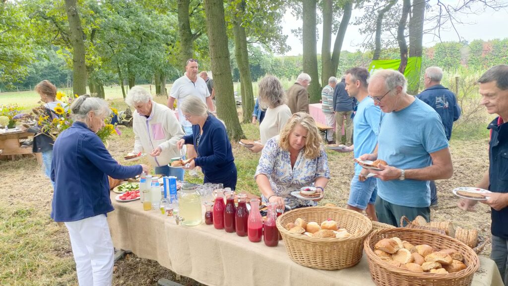 Op zondag 17 augustus organiseerde IVN Uden e.o. weer een natuurontbijt. Een traditie die is ontstaan toen in 2014 een groep gidsen haar diploma haalden. Samen met hun toenmalige mentoren Ingrid en Lies organiseren zij jaarlijks een ontbijt op een landelijke locatie waarbij de deelnemers een natuurwandeling krijgen aangeboden. Zo ook in 2025. Wederom een ongekend succes; het natuurontbijt was snel volgeboekt met veertig deelnemers en we hebben zelfs een aantal mensen moeten teleurstellen.