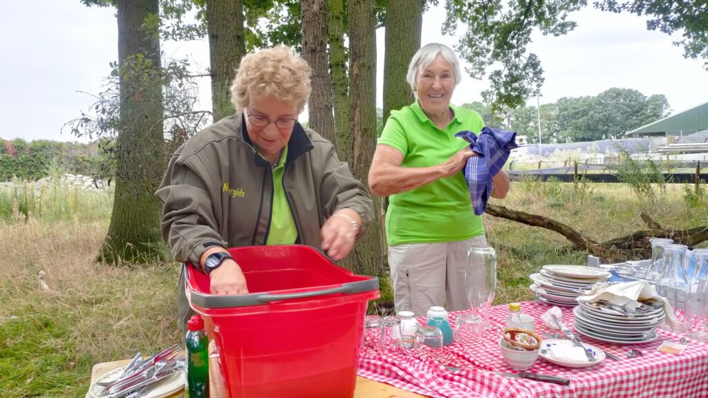 Terwijl de gidsen Ingrid, Hans van den Heuvel, Hans de Goeij, Gonnie en Joep op pad waren, ging de rest van de organisatie aan de slag met de afwas. Rond 13.00 uur was alles opgeruimd en kon iedereen tevreden naar huis.