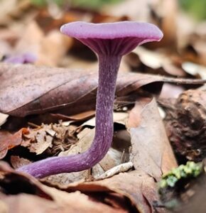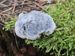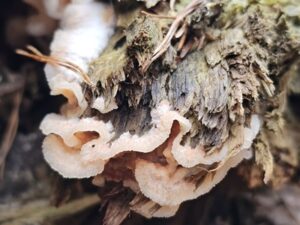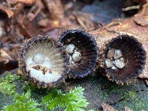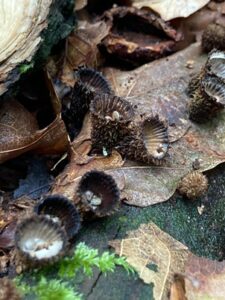 Bij de beuken langs het Slingerpad vinden we al tien soorten. Het gestreept nestzwammetje is wel de leukste van de wandeling. We zien heel veel vormen en kleuren. En wat een namen! Je kunt er een heel gerecht van samenstellen: boskip (zwavelzwam), rode koolzwam, spekzwoerdzwam, aardappelbovist, blauwe kaaszwam en appelrussula.