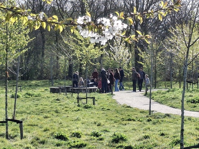 Zondag 12 april 2026, iets voor tienen. Prachtig zonnig weer en van alle kanten komen kinderen met (groot)ouders. Heel veel zijn op de fiets gekomen en dat is fijn, want het wordt weer volle bak vandaag. Zo’n veertig kinderen met begeleiding zullen er zijn.