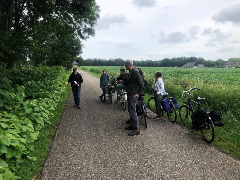 Hierbij doorkruisten we een gebied dat grote bekendheid geniet vanwege enkele breukzones en het bijzondere wijst verschijnsel dat daar in de bodem optreedt. Hier werd dan ook tijdens de fietstocht volop aandacht aan besteed. Het landschap is hier kleinschalig, hooilandjes worden afgewisseld met elzensingel en broekbosjes. De vochtige, vaak drassige bodem kent typische bewoners als dotterbloem (uitgebloeid) koekoeksbloem, valeriaan, veldrus, moerasrolkaver en zelfs orchideeën. Ook werd aandacht besteed aan een tweetal invasieve exoten: de Japanse duizendknoop en de Aziatische berenklauw. Rond 14.00 uur was men weer terug bij het ziekenhuis Bernhoven. De deelnemers en gidsen hadden op dat moment ca. 25 kilometer gefietst.