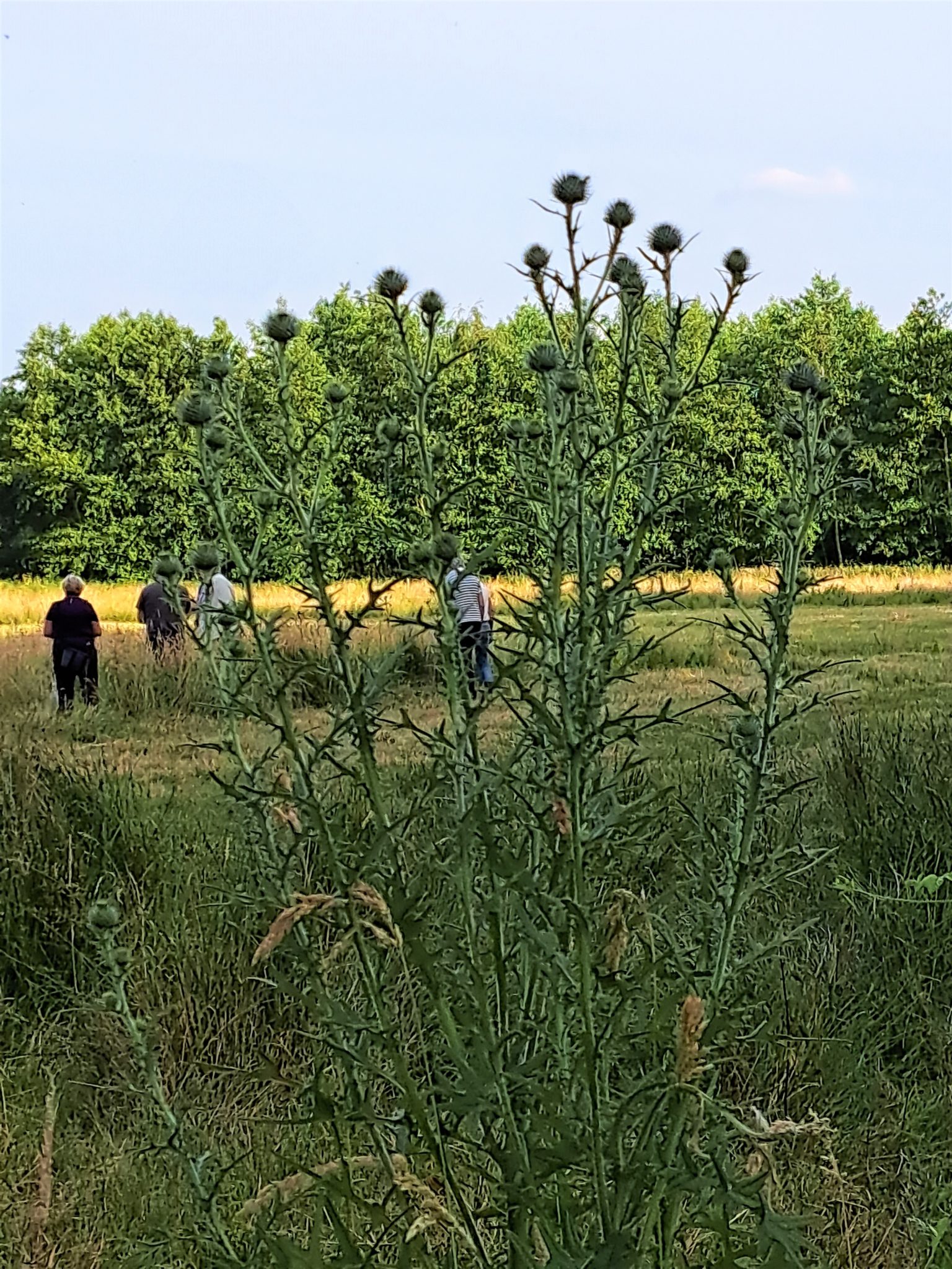 Er waren de nodige inheemse planten te vinden: o.a. Boerenwormkruid, Lisdodde, Jakobskruiskruid, Speerdistel, Paardenbloem, Wolfspoot, enz. Op het einde van de avond bleken we 83 verschillende plantensoorten gevonden te hebben! Op een gegeven moment kwamen we bij een grasland waar stukken níet gemaaid waren. Enkele die-hards trotseerden de afrastering en vonden daar de nodige soorten. Anderen liepen langs de sloot verder en scoorden ook nog het een en ander.