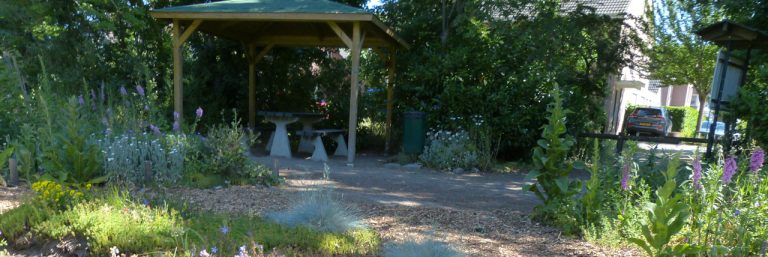 Er is hard gewerkt door vrijwilligers en met veel medewerking van verdere betrokkenen. Een heel nieuw tuingedeelte met ongeveer dezelfde doelstelling moest bedacht en aangelegd worden. Nu dat intussen al weer ruim verleden tijd is geworden is het resultaat hiervan te bekijken en te ervaren. Te bewonderen ook want ondanks lange perioden van intense droogte is het toch maar gelukt om een groeiende en bloeiende tuin aan te leggen. Een ideale plek voor allerlei kleine dieren met bovendien nog enkele kunstmatige woonplaatsen voor insecten. Rustpunten voor bezoekers zijn er ook in zon en schaduw. Voor oud en jong.