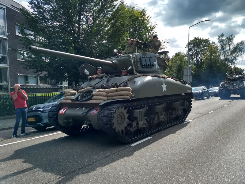 Tijdens de onthulling van de Bevrijdingsboom 2024 kwamen historische legervoertuigen langs