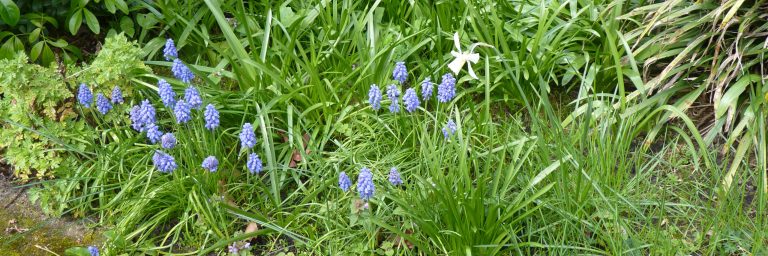 Na de krokusbloei (links) blijft het blad nog lang te zien (rechts)