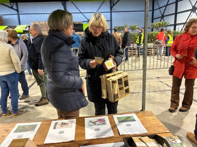 Ruim achthonderd bomen staan op de Wood4Groen-dag te wachten op een nieuwe eigenaar. IVN is deze dag ook met een informatiekraam en IVN-ers aanwezig. Voedselbos ‘t Mortelke stelde aan IVN zadenzakjes ‘Vrolijke bijenmix’ beschikbaar, die bij de IVN-stand gretig aftrek vinden. Fruitbomen en insectenhotels doen het beter met bloeiende planten in hun nabijheid. Met de zadenzakjes en ‘De 40 van 040’ is dit te realiseren. De 040-plantenlijst biedt inspiratie om de tuin biodiverser te maken met planten die passen bij Valkenswaard: https://www.eindhovenduurzaam.nl/40-van-040.