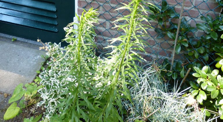 Vanaf midden mei troffen wij op verschillende plaatsen in onze tuin een bepaald soort groene jonge planten in wording aan. In een vroeg stadium is het vaak nog wel moeilijk om precies te bepalen wat zoiets worden zal. Een rechtop staande stengel met aan alle kanten schuin afstaande lijnvormige bladeren. Een lichte beharing van de stengel en alles lichtgroen van kleur. Eerst nog klein en allengs groter van formaat.